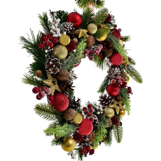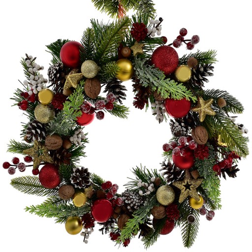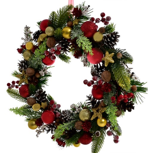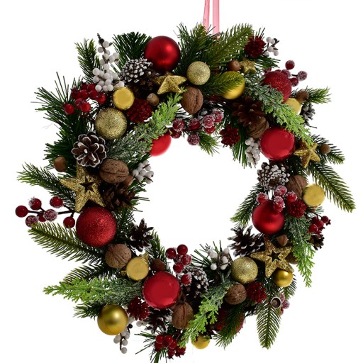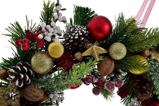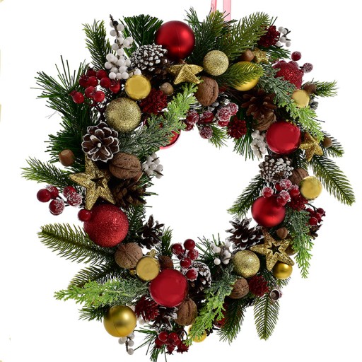 Świąteczny wianek na drzwi z bombkami dekoracyjnymi gałązkami gwiazdkami - 45 cm