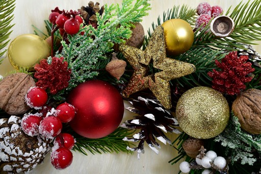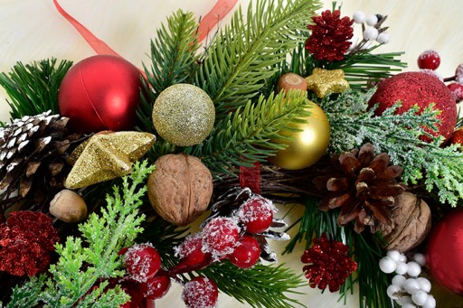 WIANEK NA DRZWI ŚWIĄTECZNE DEKORACJE WIENIEC BOMBKI ŚWIERK ŚWIĘTA STROIK