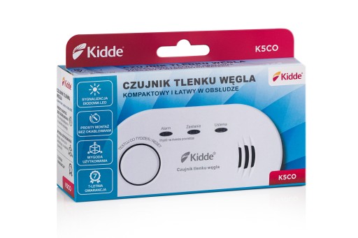 Czujnik tlenku węgla K5CO wyposażony w sensor elektrochemiczny Kidde - gwarantujący 10-letni okres pracy.