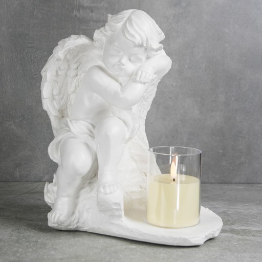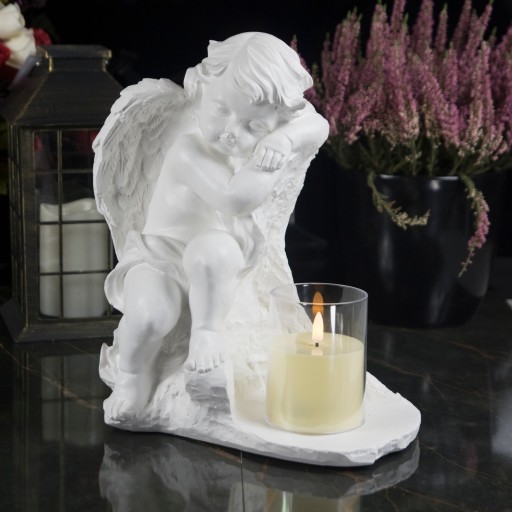 ➡️ Ozdobna gipsowa figurka ogrodowa, nagrobna + świeca LED w kształcie aniołka