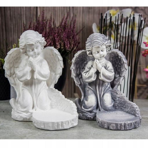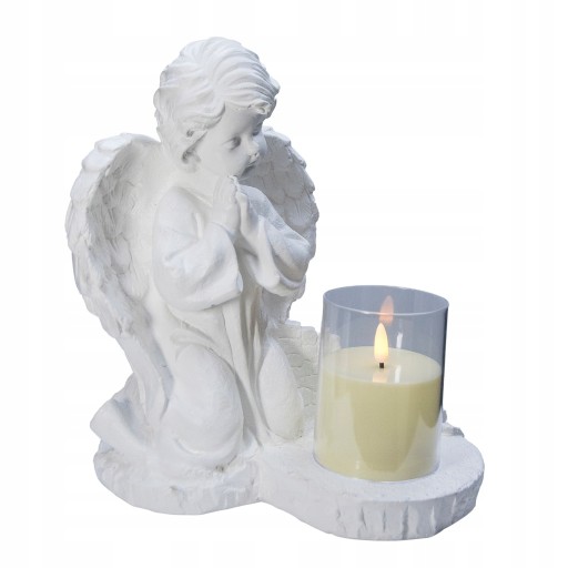 ➡️ Ozdobna gipsowa figurka ogrodowa, nagrobna + świeca LED w kształcie aniołka