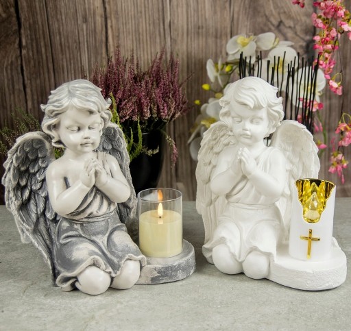 ➡️ Ozdobna gipsowa figurka ogrodowa, nagrobna + świeca LED w kształcie aniołka