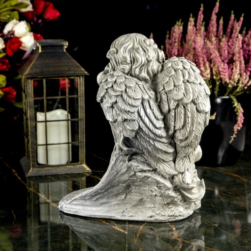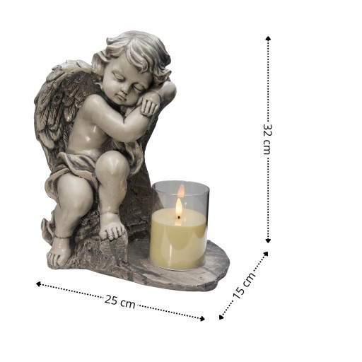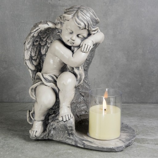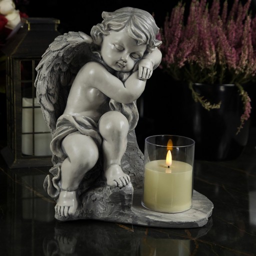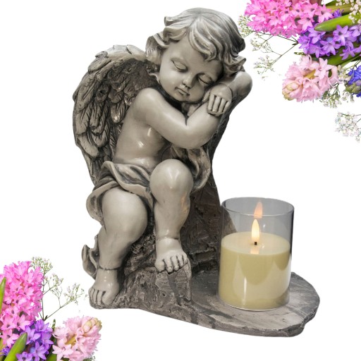 ➡️ Ozdobna gipsowa figurka ogrodowa, nagrobna + świeca LED w kształcie aniołka
