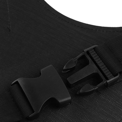 - Szelki są zapinane na klamrę, z możliwością regulacji,