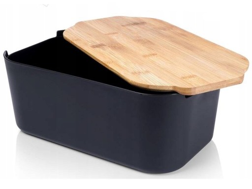 CZARNY CHLEBAK POJEMNIK PIECZYWO DESKA BAMBUSOWA