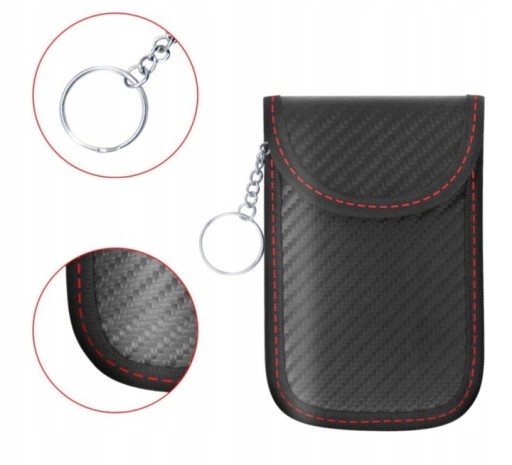 Etui posiada precyzyjnie zaprojektowaną budowę, a także zostało wykonane z wytrzymałych materiałów, które razem doskonale blokują sygnał kluczyków wewnątrz akcesorium. W środku pokrowca znajdują się dwie kieszonki oraz breloczek z łańcuszkiem, który zabezpiecza kluczyki przed wypadnięciem.