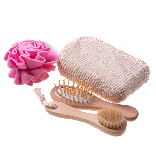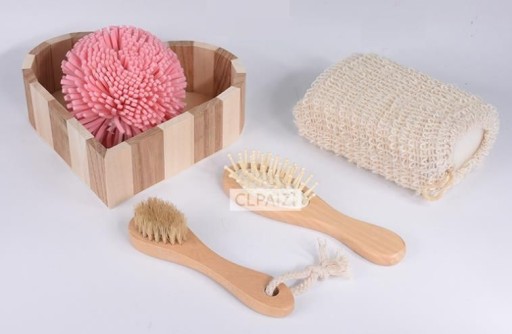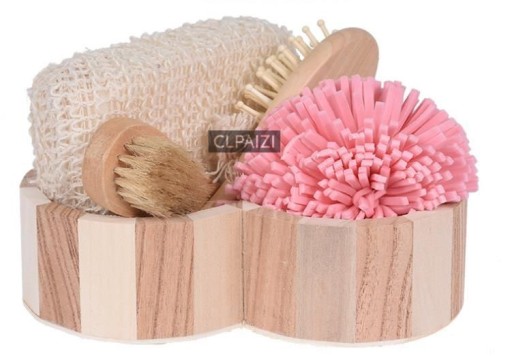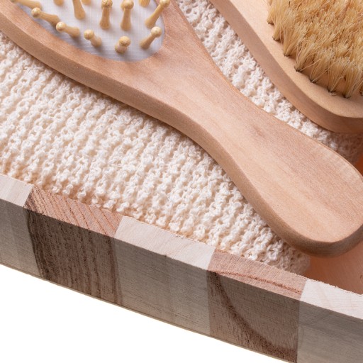 Zestaw zapakowany w eleganckie drewniane pudełko, mieść 4-elementowy zestaw kąpielowy. Idealny do masażu oraz usuwania martwego naskórka, pobudza krążenie krwi. Świetny pomysł na prezent.