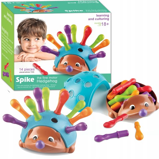 Edukacyjny jeżyk to zabawka ceniona przez rodziców, nauczycieli i dzieci. Jej walory motoryczne pomagają dzieciom wejść w początkową edukację w sposób zabawy tak by zapamiętywały poszczególne kolory takie jak zielony fioletowy czerwony pomarańczowy, oraz liczby od 1-12.