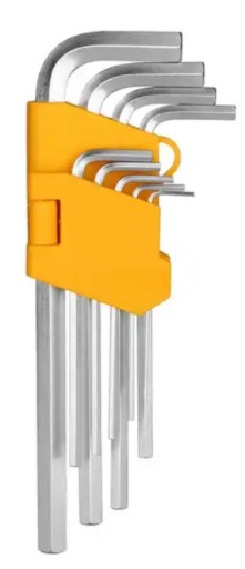 Zestaw kluczy imbusowych sześciokątnych, który zawiera 9 kluczy 1.5-10mm wykonanych ze stali chromowo-wanadowej.