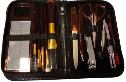 - W tym obszerny 14-częściowy zestaw pędzli do manicure i kosmetyków