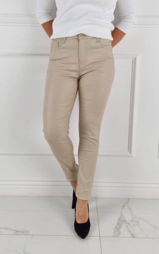 Świetne klasyczne spodnie woskowane OCIEPLANE imitującą skórę, posiadają wysoki stan. Świetne do sportowego obuwia ale idealnie też sprawdzą się w połączeniu ze szpilkami, dzięki swojej uniwersalności, pasują niemal do każdej stylizacji. Elastyczny materiał podkreśla kobiecą sylwetkę. Spodnie są dopasowane, rozciągają się. Podkreśl swoje kobiece kształty! Spraw, by Twój codzienny Look był niepowtarzalny. Spodnie po obu stronach posiadają kieszenie.