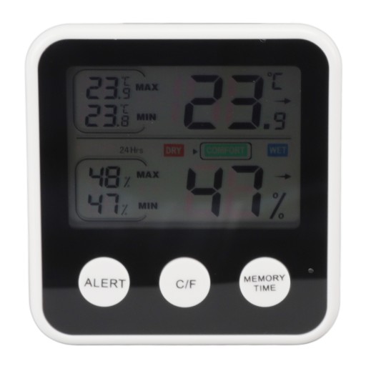 4. Wskaźnik poziomu komfortu: Ten cyfrowy termometr ma 3 poziomy symboli, w tym mokry/komfortowy/suchy, które pomagają utrzymać komfortowe środowisko w domu.