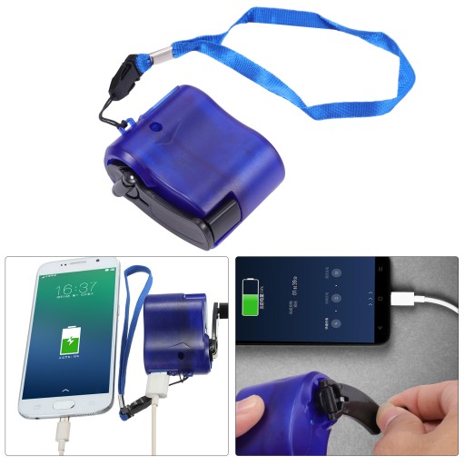 - Ten produkt to ręczny generator korbowy, wykonany z tworzywa sztucznego, wysokiej jakości i trwały. Lekki i kompaktowy, pozwala nosić go w dowolnym miejscu. Dobry wybór do użytku na zewnątrz kempingu, który może pomóc w naładowaniu telefonu komórkowego.