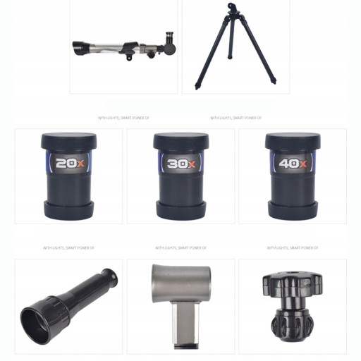 Dostarczany ze statywem, bardzo wygodnym do obserwacji obiektów.