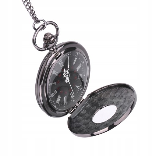CZARNY ZEGAREK MĘSKI KIESZONKOWY GŁADKI STEAMPUNK RETRO DEWIZKA PUNK