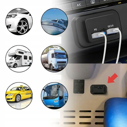 GNIAZDO SAMOCHODOWE ŁADOWARKA USB 12V 24V PD QC3.0
