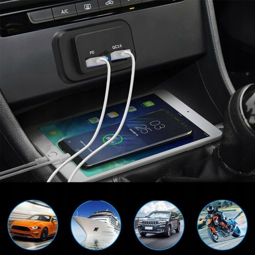 QC 3.0 PD 12V 24V Podwójna ładowarka samochodowa USB typu C Adapter gniazda adaptera Panel wspornika