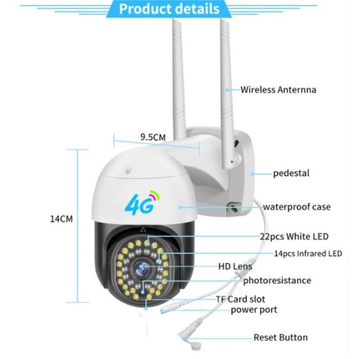 БЕСПРОВОДНАЯ НАРУЖНАЯ ПОВОРОТНАЯ WIFI 4G 8-мегапиксельная камера
