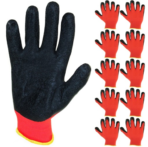 - Rękawice ochronne wykonane z poliestru, powlekane lateksem zakończone ściągaczem