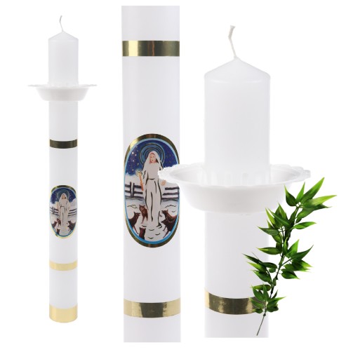 СВЕЧА БЕЛАЯ ВОСК, 40х3см, БОЖЬЯ МАТЕРЬ, СВЕЧА