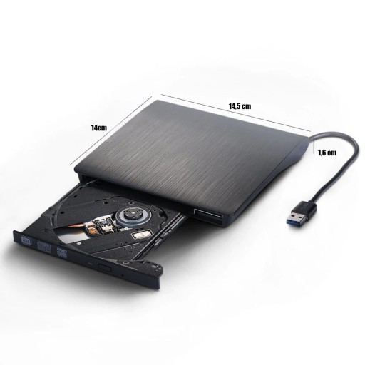 Przenośny zewnętrzny napęd optyczny CD/DVD. Do komunikacji z komputerem i zasilania wykorzystuje porty USB 3.0! Urządzenie jest łatwe w instalacji. Wykorzystuję technologię Plug & Play. Dzięki kompaktowym rozmiarom można go z łatwością przenosić.