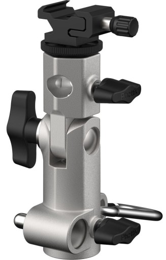 Opatentowany przez Phottix uchwyt Varos Pro S Umbrella został zaprojektowany przez profesjonalnych fotografów do mocowania gorącej stopki lampy błyskowej i parasolki na statywie oświetleniowym lub trójnogu. Idealne na miejscu lub w studio, parasolki zapewniają miękkie światło, doskonałe do portretów lub efektów specjalnych. Nowy Varos Pro jest o 300% mocniejszy niż poprzednie wersje i posiada korpus ze stopu aluminium z metalową stopką, gwintowaną wkładkę 3/8" i 1/4", męskie śruby 3/8" i 1/4" w zestawie.