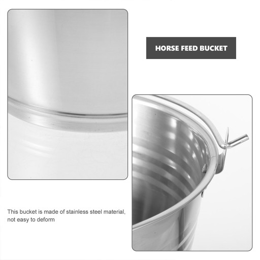 ✅Wykonane ze stali nierdzewnej. To metalowe wiadro jest odporne na upadek i zużycie oraz niełatwo je złamać. Wewnętrzna ściana metalowego wiadra jest bardzo gładka i nie porysuje rąk podczas czyszczenia. Możesz go użyć do karmienia koni.