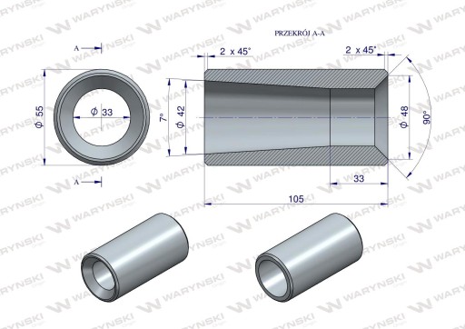 OPIS / SYMBOL: Tuleja zęba ładowacza do zęba 1200 Tur Waryński