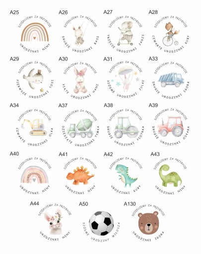 - personalizacji, w formie jakiej ma znajdować się na naklejce (np. Trzecie urodziny Milenki, Urodzinki Kuby)