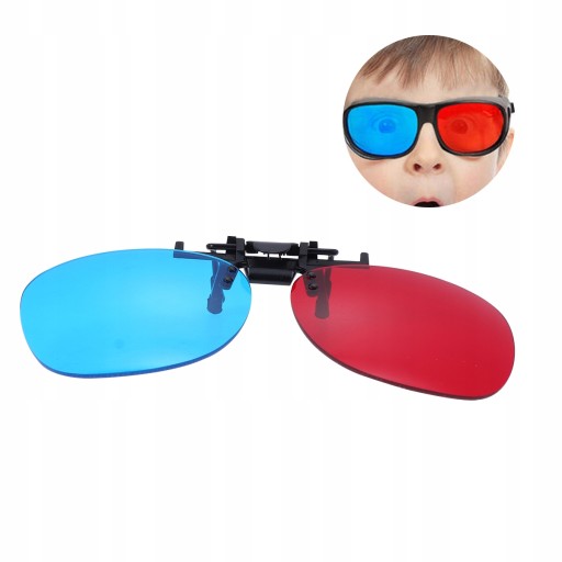 Klips do okularów 3D w kolorze czerwono-niebieskim, nie szkodzi oczom.