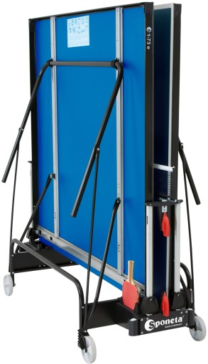 Stół do tenisa stołowego SPONETA S1-73e jest to stół zrobiony z wysokiej jakości materiałów, którego powierzchnia porównywalna jest do stołów wykorzystywanych w turniejach światowych. Posiada opcje rozkładania się w 2 oddzielne połówki które umożliwiają grę jednoosobową. Dzięki wysokiej jakości materiałów można z niego korzystać na zewnątrz. Praktyczny system jezdny, posiada cztery koła gumowe. Idealny do szkół, klubów oraz ośrodków wypoczynkowych.