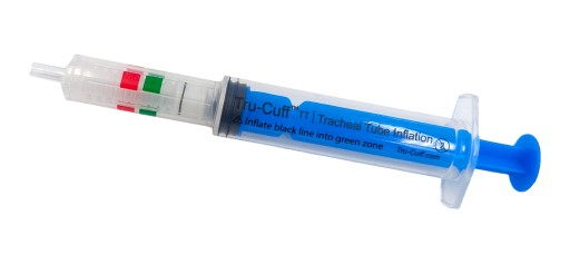 Strzykawka wskazuje ciśnienie w rurce dotchawiczej i mankietach masek krtaniowych, minimalizując ryzyko urazu dróg oddechowych z powodu nadmiernego napompowania mankietu.