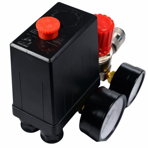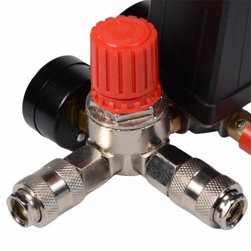 Wysokiej jakości wyłącznik ciśnieniowy (presostat) z kolektorem, dwoma szybkozłączkami i manometrami przeznaczony do kompresorów ciśnieniowych jednofazowych na 230V.