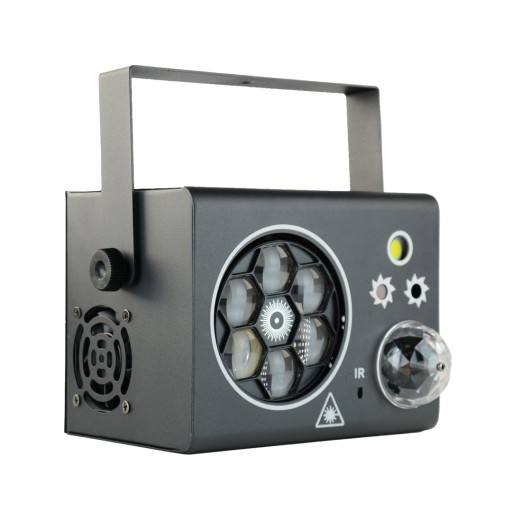 - Stroboskop: Potężna biała dioda LED 10W pozwala na generowanie dynamicznych efektów stroboskopowych, nadając imprezie ekscytujący charakter.