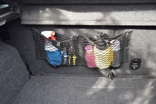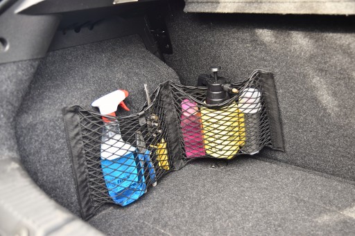 - Łatwość montażu: Montaż siatki jest niezwykle prosty. Wystarczy przyczepić paski rzepowe do punktów mocowania w bagażniku samochodu lub do innych elementów wyposażenia (za oparciem siedzenia, za nadkolem, na welurowych dywanikach ), a następnie umieścić przedmioty wewnątrz siatki. To szybkie i wygodne rozwiązanie.