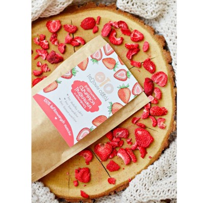 Liofilizowana Truskawka w formie owocowych chipsów to niskokaloryczna, smakowita i chrupiąca przekąska, którą dzięki zamknięciu w wygodnej torebce można zabrać ze sobą wszędzie. Suszenie mrozem pozwala zachować smak i witaminy, więc owoce są cennym źródłem witaminy C i B.