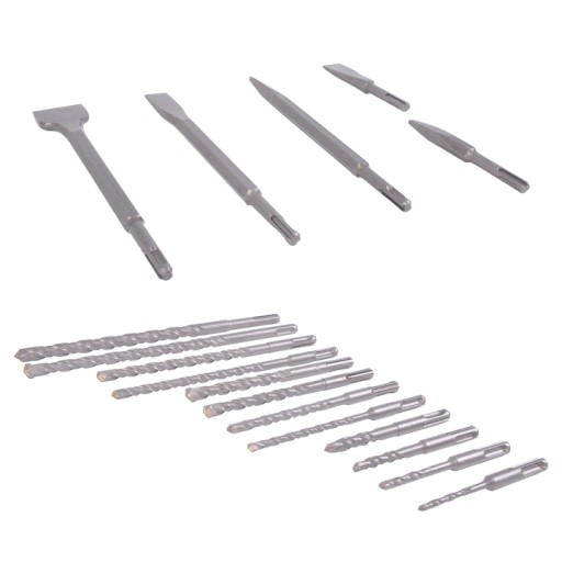 - Wysokiej jakości dłuta i wiertła wykonane są z trwałego materiału.