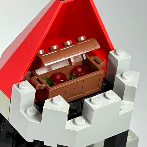 Brakuje figurek i elementów które trzymały w dłoniach. Flaga jest zamieniona na dwie małe flagi, schody są zamienione na inne, włócznia w przyczepce konia jest czarna zamiast brązowa. Po za tym każdy nawet najmniejszy klocek jest, łącznie z akcesoriami.