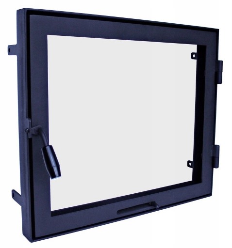Ten model drzwiczek polecamy szczególnie osobom posiadającym otwór montażowy o wymiarach większych niż 70x50 cm. Ich solidna konstrukcja z profilów zamkniętych o przekroju 30x30 mm i grubości ścianki 3 mm, sprawia że drzwiczki są bezpieczne nawet przy bardzo dużych otworach paleniskowych. W związku z tym że konstrukcja drzwiczek wchodzi do wnętrza otworu to otwór po otwarciu drzwiczek pomniejszy się o ok. 10 cm na każdym wymiarze.