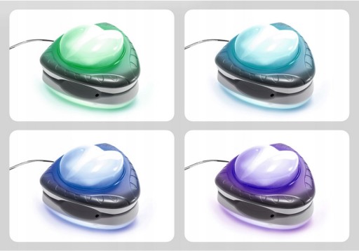 Świeci na cztery kolory: zielony, morski, niebieski i fioletowy
