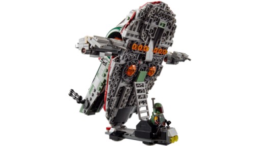 Zbuduj kultowy statek kosmiczny Boby Fetta i odgrywaj ekscytujące misje z Mandalorianinem! Wskocz do kokpitu i wyrusz szukać nagród. Strzelaj klockami z miotacza, namierzaj cele obrotowymi działami wyposażonymi w dwa blastery i zamrażaj zdobycze w karbonicie. Wyląduj na planecie Tython i wykorzystaj transporter, aby przesunąć statek (lub wyeksponować go w pionowej pozycji lotu).