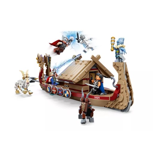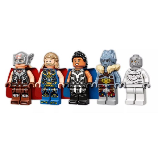 • Kultowi superbohaterowie — na pokładzie ogromnej łodzi Thora jest pięć minifigurek postaci z filmu: Thor, Potężna Thor, Walkiria, Korg i Gorr. Mnóstwo realistycznych akcesoriów dodatkowo pobudza wyobraźnię dzieci