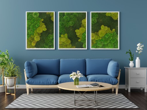 Najlepiej przykleić mech do paneli. Kępkę mchu chrobotka kleimy na klej zgrzewalny do płyty a następnie płytę zawieszamy / montujemy na ścianie.