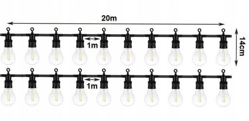 GIRLANDA ŚWIETLNA Ogrodowa Lampki ogrodowe do ogrodu 20 METRÓW 20 LED