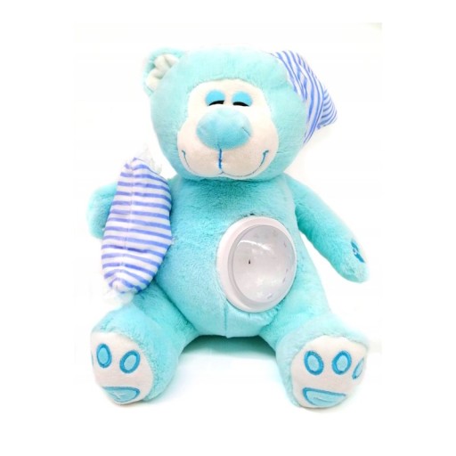* wbudowana lampka/projektor - za jej pomocą miś rozświetli ciemności w pokoju dziecka wyświetlając różnokolorowe gwiazdki na ścianach bądź suficie