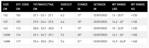 - Konstrukcja: Hybritech - Zapewnia zoptymalizowane inicjowanie skrętu oraz zmniejszenie oporu podczas przechodzenia z krawędzi na krawędź jednocześnie dając większą wytrzymałość.