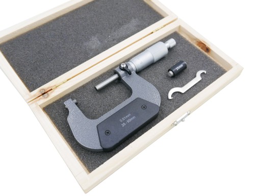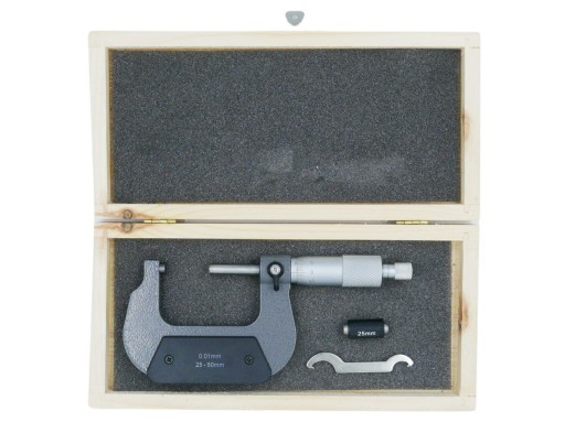 MIKROMETR MIKROMIERZ NONIUSZOWY ZEWNĘTRZNY - PRZEDZIAŁ POMIAROWY 25-50 mm W DREWNIANYM OPAKOWANIU