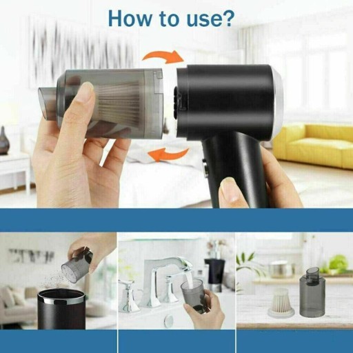 🏎️ Przenośny odkurzacz ręczny jest wyposażony w 2 filtry, 1 dyszę szczotkową i 1 dyszę szczelinową