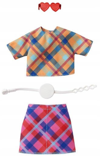 Jeśli jesteś fanką Barbie, to świetnie się składa! Na pewno chcesz, aby Twoje lalki zawsze wyglądały oszałamiająco pięknie, prawda? Już dziś możesz powiększyć garderobę Barbie o niesamowity zestaw ubrań. W opakowaniu znajdziemy koszulkę i spódnicę w kratę. Komplet uzupełniają stylowe akcesoria - biały pasek oraz czerwone okulary przeciwsłoneczne. Zestaw ten sprawi, że Twoja laleczka będzie królową każdej imprezy.