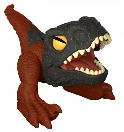 Pyroraptor to stosunkowo niedawno odkryty dinozaur, który osiągał niewielkie rozmiary. Z wyglądu przypominał połączenie dzikiego, pokrytego piórami ptaka z potężną jaszczurką – jako mała figurka Pop-Up z linii Jurassic World Uncaged przypadnie jednak do gustu wszystkim miłośnikom filmów o mieszkańcach wyspy Isla Nublar. Jest bordowo-szarego koloru, a jego paszcza ujawnia rzędy ostrych zębisk. Naciśnij na głowę pyroraptora, a zobaczysz, jak paszcza się zamyka, podobnie jak okrągłe, żółte oczy.